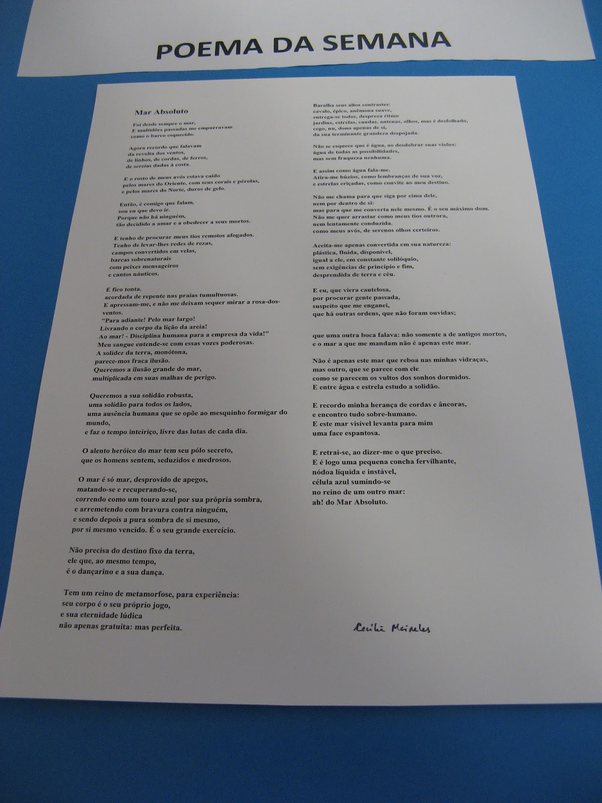 Poema da semana de 29 de janeiro de 2018, exposto na Área de Exposições da Biblioteca, da nossa escola. Um convite à leitura:
