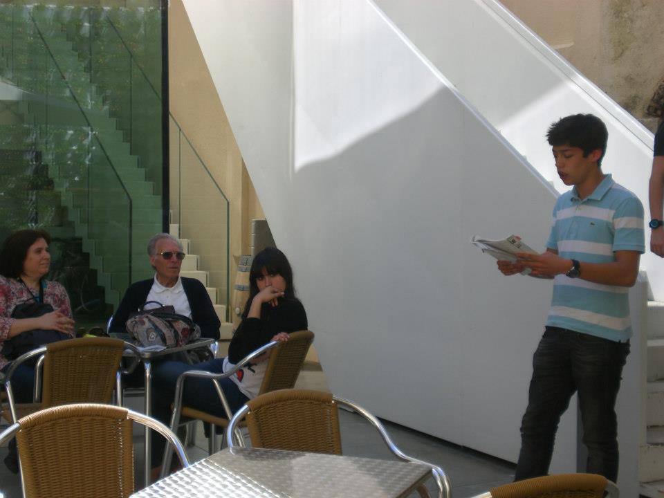 Um dos momentos da manhã foi a interpretação do poema “Calçada de Carriche”, de António Gedeão, por alunos da Escola Secundária D. João II, turma do 7ªB. Os alunos do 7ºB foram acompanhados pelo Professor Nuno Sousa.