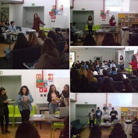 Os alunos do 11 A, B, C e E leram pequenas estórias em Inglês escritas pelos alunos do 11º ano. A atividade foi dinamizada pela Professora Maria L. Monteiro e contou com a participação dos alunos do 11º ano. Os encarregados de educação foram convidados a participar neste evento.