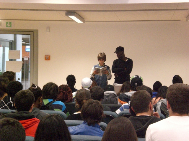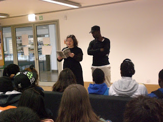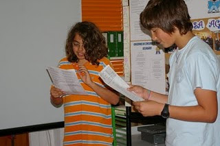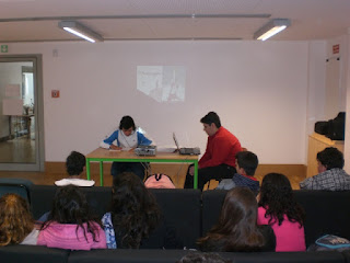 As turmas do 7º E e 7º F apresentaram e dramatizaram a leitura de poemas. A actividade foi apresentada a outras turmas e o resultado foi muito positivo!